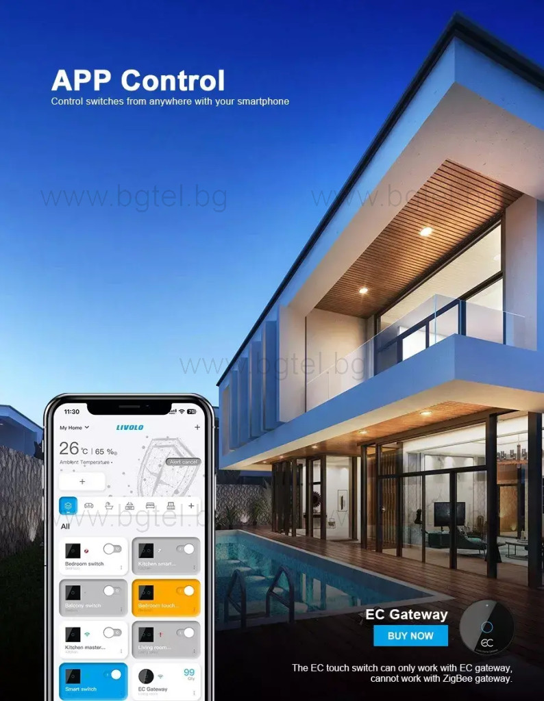 - Разширени възможности: Ключовете и контактите Livolo технологично работят с все повече аксесоари за интелигентен дом.
